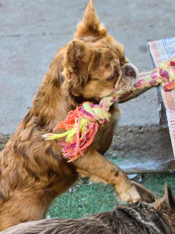 At Color Me Frenchys , we believe that dogs are not just pets, they are family and are loved and treated as such. They are started on a preventative worming regimen at 2wks old and that continues until the day you bring them home. At 3 wks of age about the time I introduce solid foods, they are litterbox trained. They from day one are loved,cuddled, socialized,rocked,and poorly sung to!